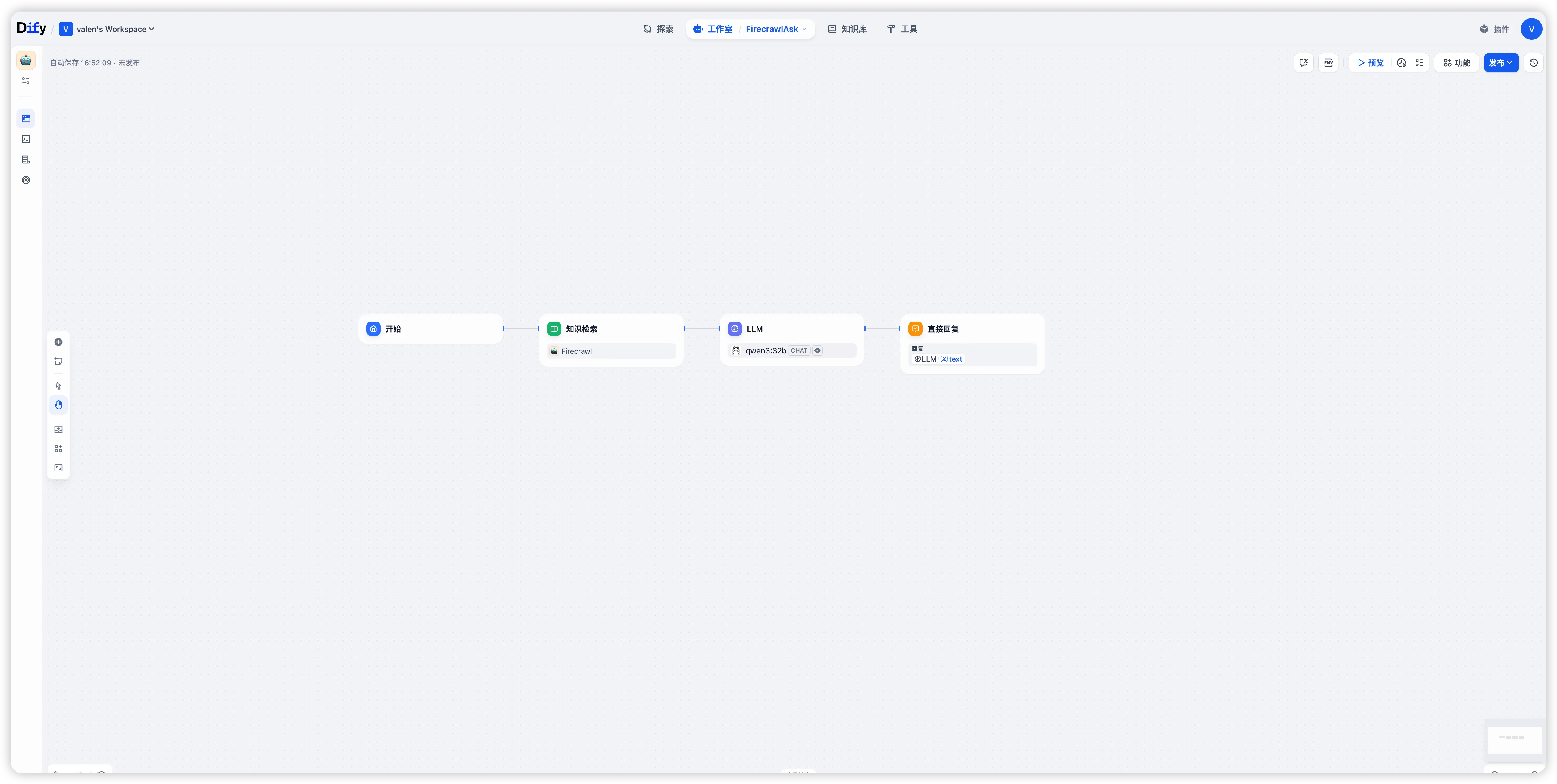 其中 Firecrawl API 密匙填写的是在安装 Firecrawl 时配置的TEST_API_KEY=ceshi。